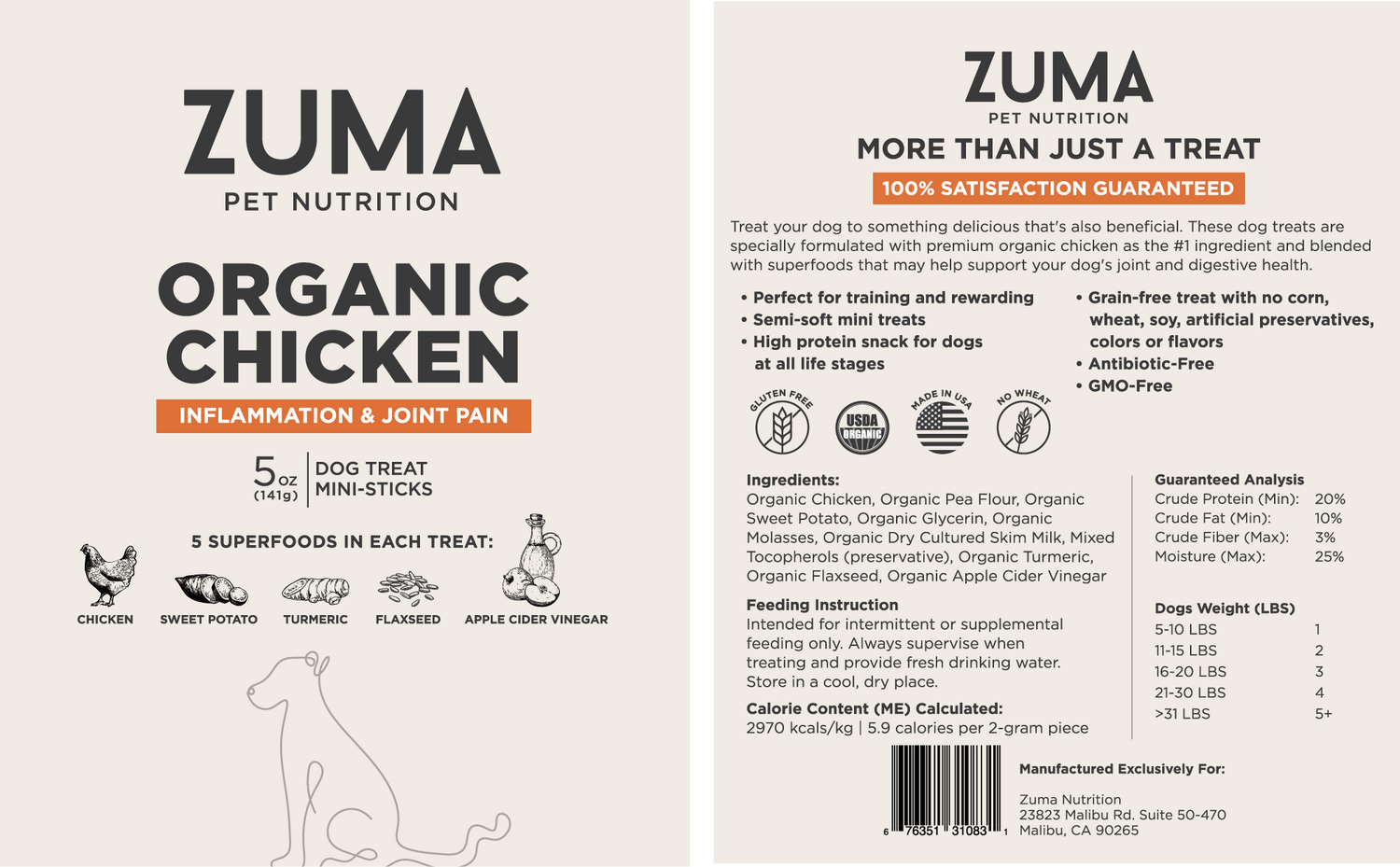 Organic Chicken Dog Treats & Organic Turkey Dog Treats