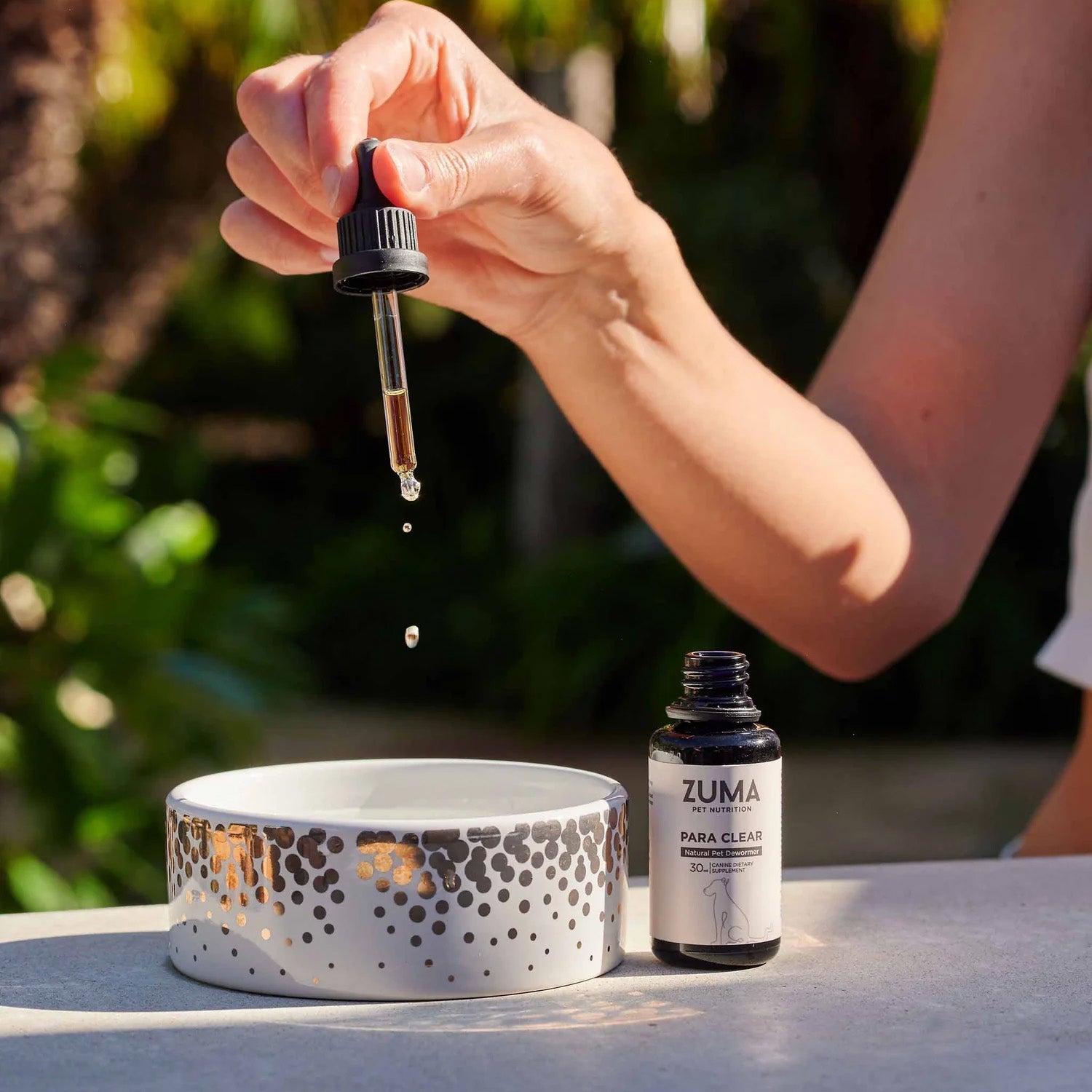 Through the extraction of key ingredients, our Para Clear Tonic may help to eliminate the adult, larva and egg stages of many different species of harmful parasites.† Our formula uses a therapeutic extraction process that is able to concentrate the active ingredients into a therapeutic liquid to support your pet's gut health.